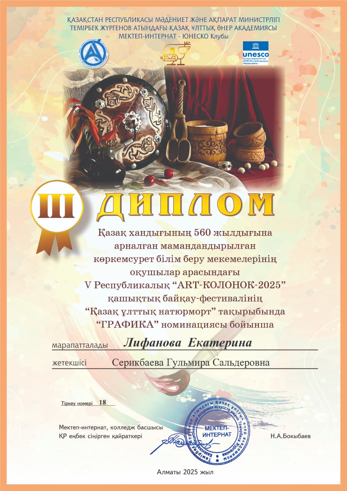 Лифанова Екатерина – III дәрежелі ДИПЛОМ,