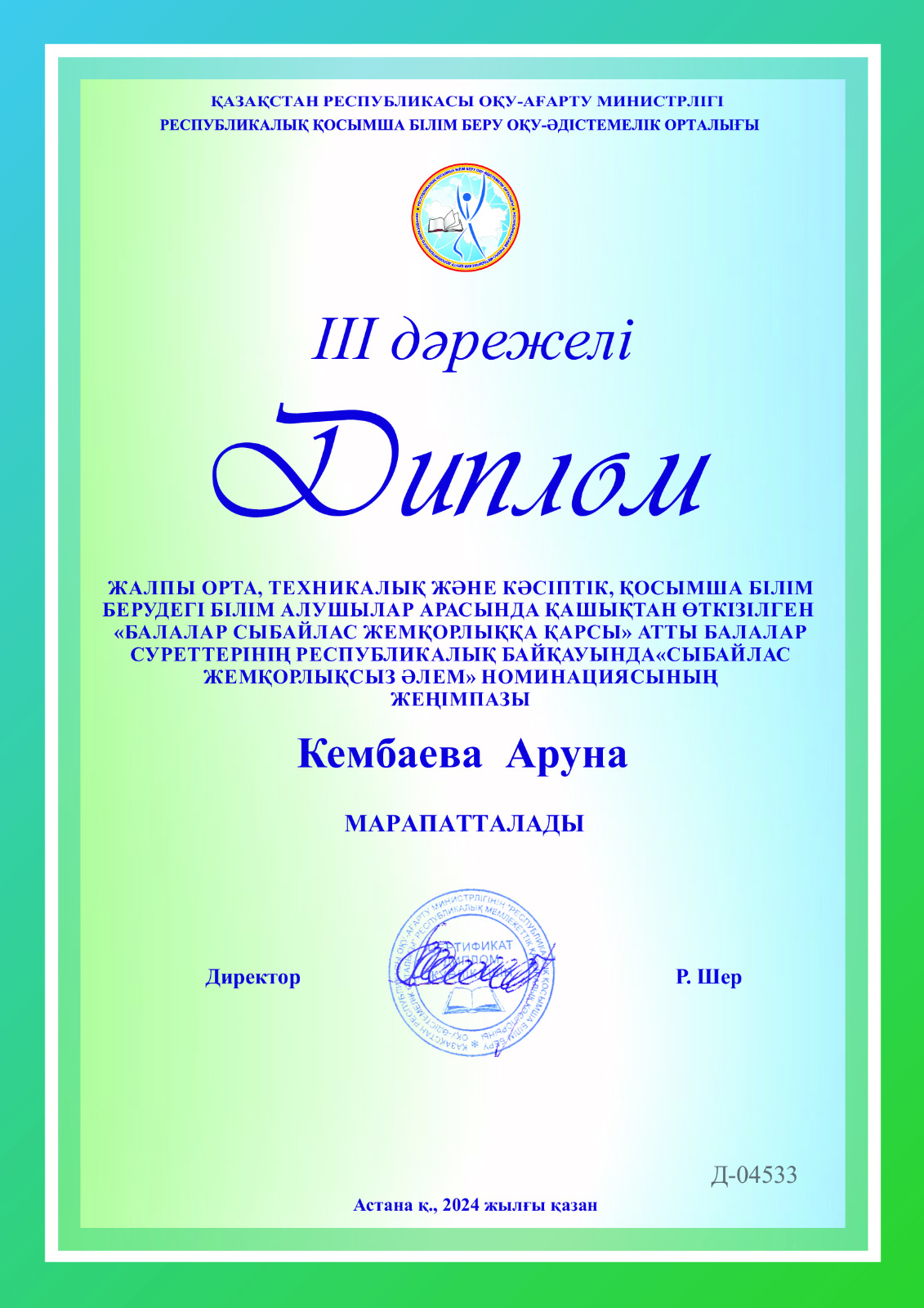 18.11.23-12.01.24 аралығында Астана қаласында "Бояулар құпиясы" республикалық шығармашылық байқауы өтті. Байқаудың ұйымдастырушысы "Атамұра" республикалық ғылыми - әдістемелік орталығы болып табылады.