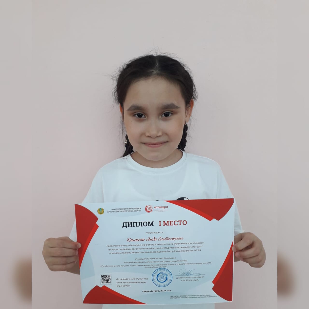 Балалар өнер мектебінен байқауға 1 курс оқушысы Қалиева Аида қатысты.