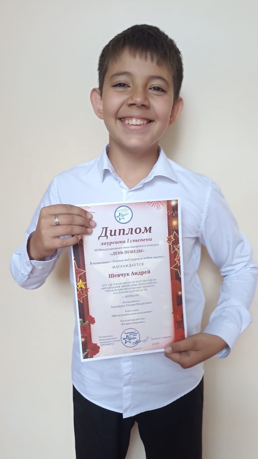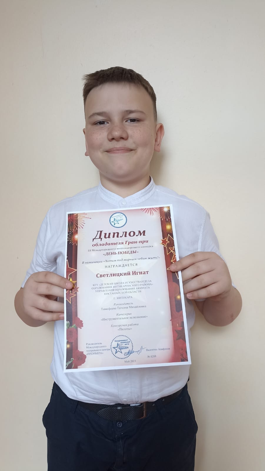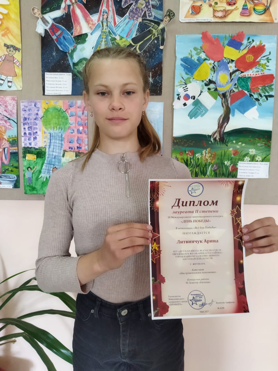 Оқушылар Дипломдармен марапатталды. Ұлы Отан соғысындағы Жеңіс-халықтың ерлігі. Осындай байқаулардың арқасында балалар тиісті тақырыптағы әндер, аспаптық композициялар арқылы музыканың арқасында батырлардың ерлігін біліп, есте сақтап, құрметтейтіні қуантады.
