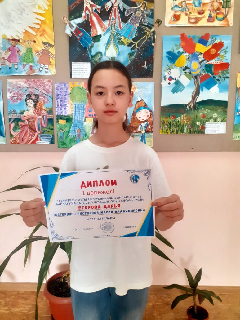 БӨМ атынан Алексеев Иван, Бантыш Алексей, Жигалова Дарья (мұғалім Серикбаева Г. С.), Лукина Дарья, Урал Акбота (мұғалім Жиенкулова А. Н.), Исмухамбетова Дания (мұғалім Молдыбаева А. Д.), Ханжина Анна (мұғалім Коба Т. В.), Хусаинова Жанайым, Егорова Дарья (мұғалім Чистякова М. В.). Байқау нәтижесінде Ханжина Анна I дәрежелі лауреат атанды, Егорова Дарья I дәрежелі лауреат дипломын алды. Оқушыларды жеңісімен құттықтаймыз!