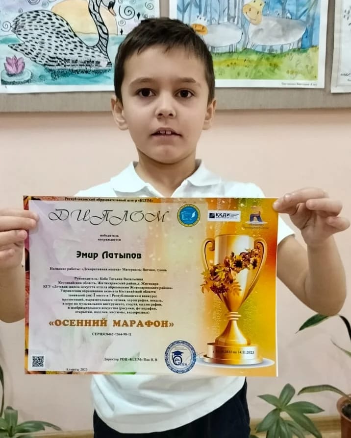 Балалар өнер мектебінің атынан көркем бөлімнің даярлық курстың оқушылары Латыпов Эмир және Паневина Дарья (мұғ. Коба Т.В.) қатысты.