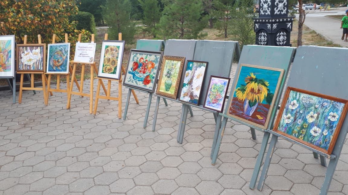 Көрмеде көркем бөлім түлектерінің жұмыстары: папье машеден жасалған мүсіндер, әртүрлі стильде жасалған картиналар: дерексіз, стимпанк, батик стилі, сондай-ақ сурет салудың әртүрлі техникаларында ұсынылған.