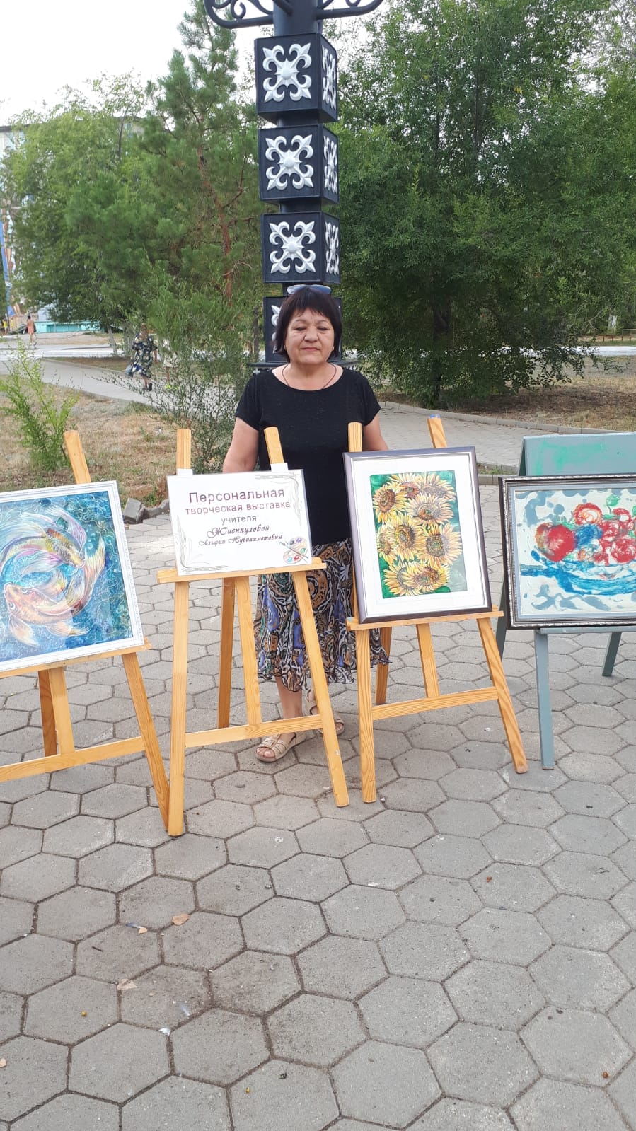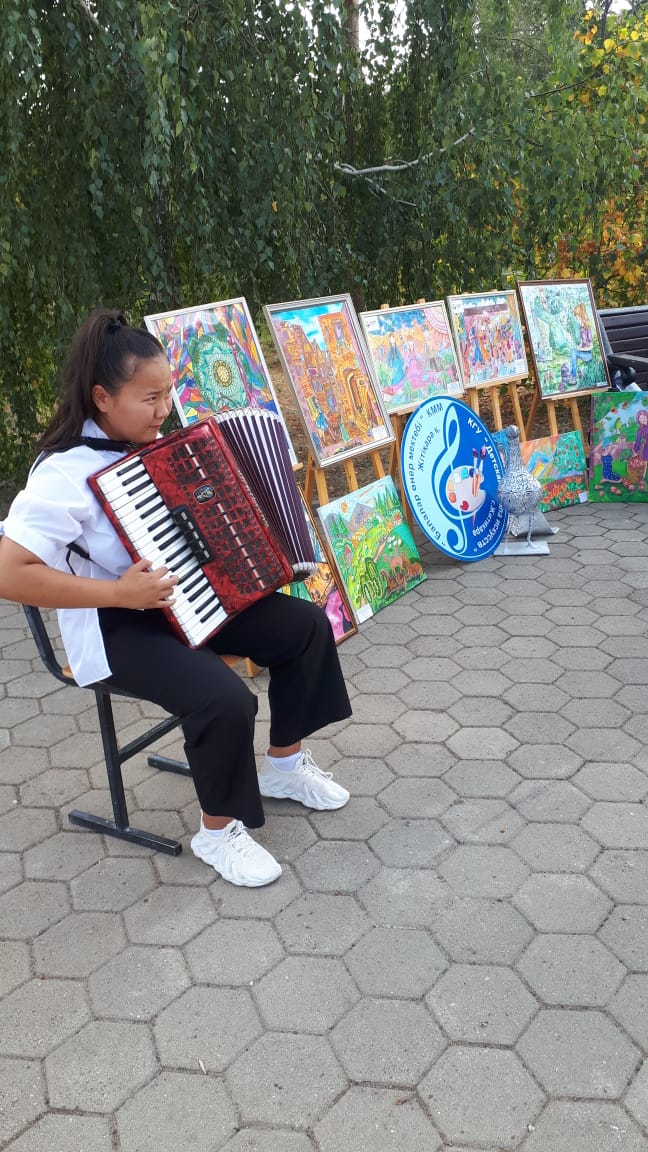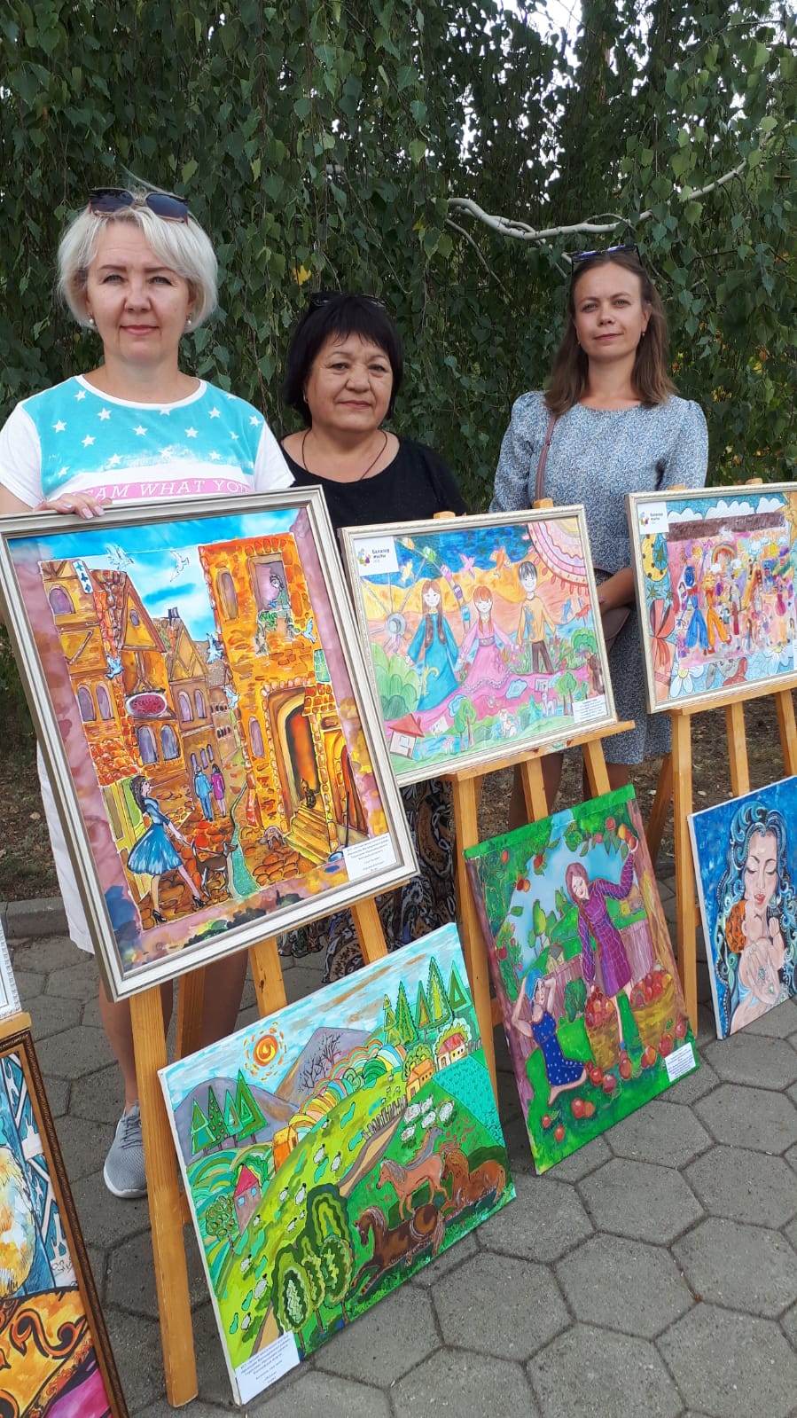 Ең жарқын жұмыстардың қатарына Диана Толпыгинаның «Алмалы жаз» кіреді. Оқушы хош иісті алма жинайтын қыздарды суреттеп, батик техникасында жұмыс жасады.