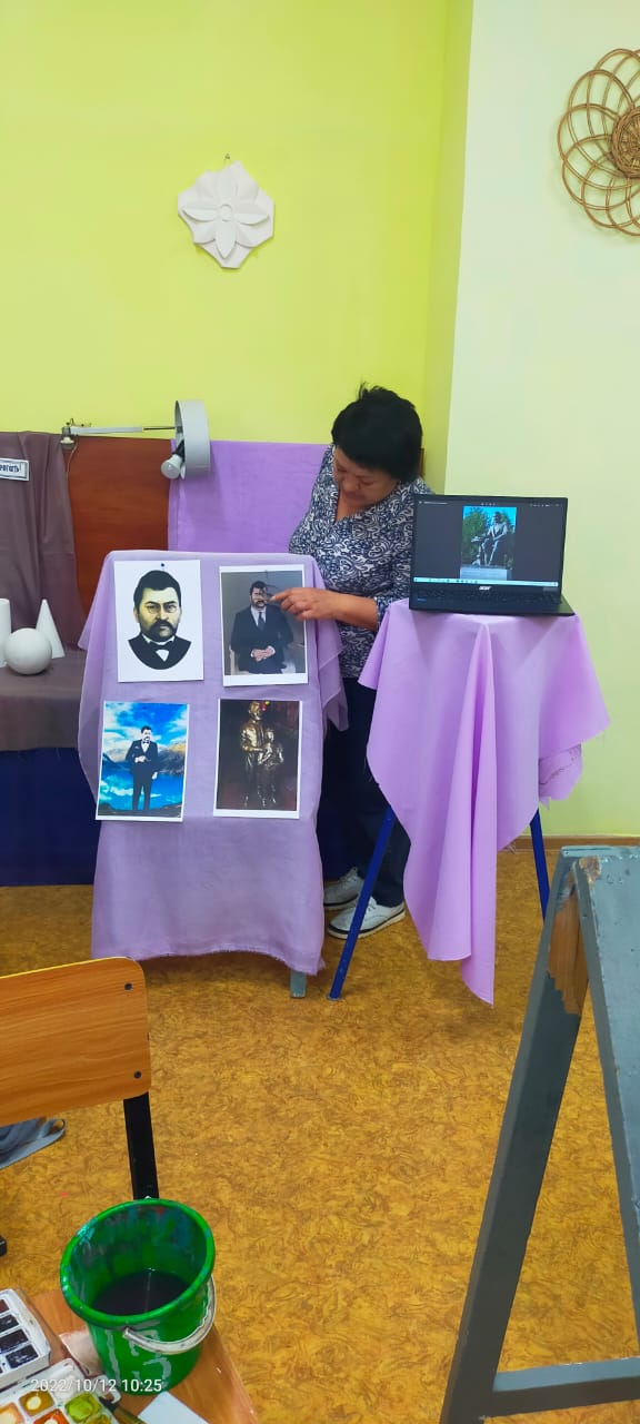 Ерекше сабақ - экспромт импровизация түрінде өткізілді (музыкада да, бейнелеу өнерінде де ойдан шығару) және қызықты болды. Әр оқушы ұлттың ұлы ағартушысының портретін өзінше суреттеді, ол былай деп жазды: «Алдыңғы өнердің бәрінің де қызметін шама-қадырынша сөз өнері атқара алады, қандай сәулетті сарайлар болсын, қандай сымбатты я кескінді суреткер болсын, қандай әдемі ән-күй болсын, сөзбен сөйлеп, суреттеп көрсетуге, таныстыруға болады».