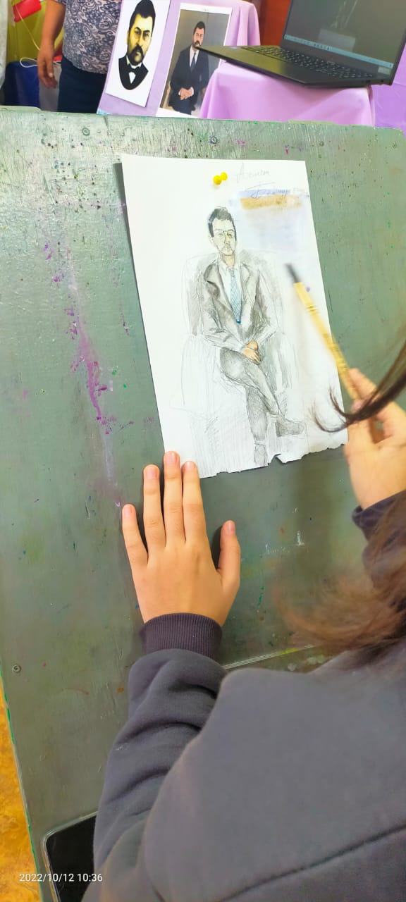 Оқушылар ХХ ғасырдың 20-жылдарындағы тарихи дәуірге енуі үшін Альфия Нуриахметовна интерактивті материалды пайдалана отырып, ұлы ұстаздың өмірі туралы қызықты ақпарат дайындады және бұл оқушыларға А.Байтұрсыновтың портретін салуда қолайлы көмек көрсетті.
